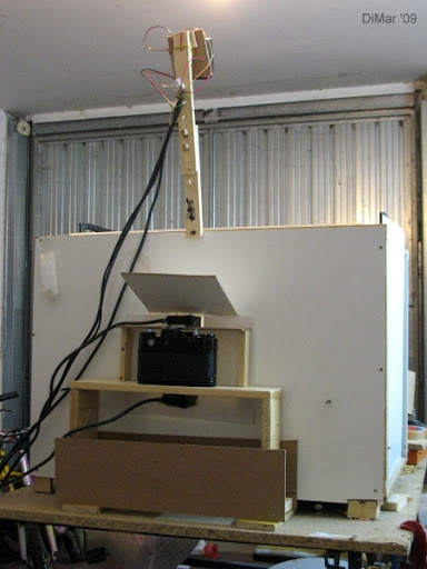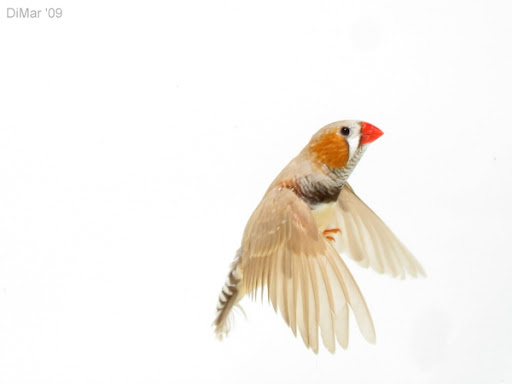 ho sostituito il posatoio centrale con due posatoi ai lati della gabbia, poi ho aggiunto una staffa per il flash esterno, un supporto per appoggiare la digitale e due sensori IR (che fanno scattare il flash). Fin qui la parte facile. La parte difficile è scattare la foto perchè il flash esterno non viene comandato dal pulsante di scatto ma dai sensori, quindi l'otturatore deve rimanere aperto mentre i mandarini, svolazzando da un posatoio all'altro, passano davanti all'obbiettivo. All'inizio beccavo un mandarino ogni 30 scatti (snervante e frustrante), ora con un po' di pratica va molto meglio.